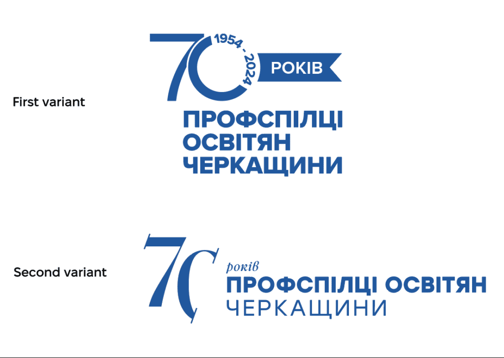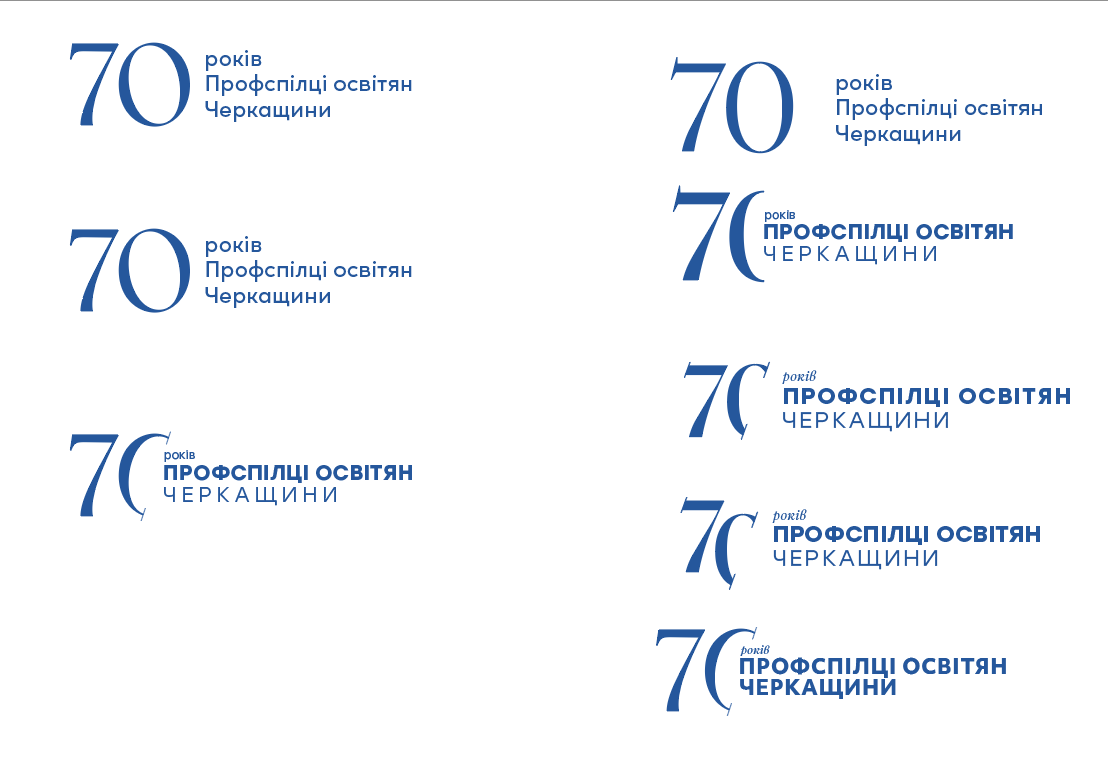 When designing the logo, I initially focused on a shorter naming, as the client initially suggested adding the full name of the event: “70 years of the Cherkasy Regional Organization of the Trade Union of Education and Science Workers of Ukraine”. A successful option came to mind immediately, and it remained as “70 years of the Trade Union of Educators of Cherkasy Region” (in Ukrainian it sounds much shorter).