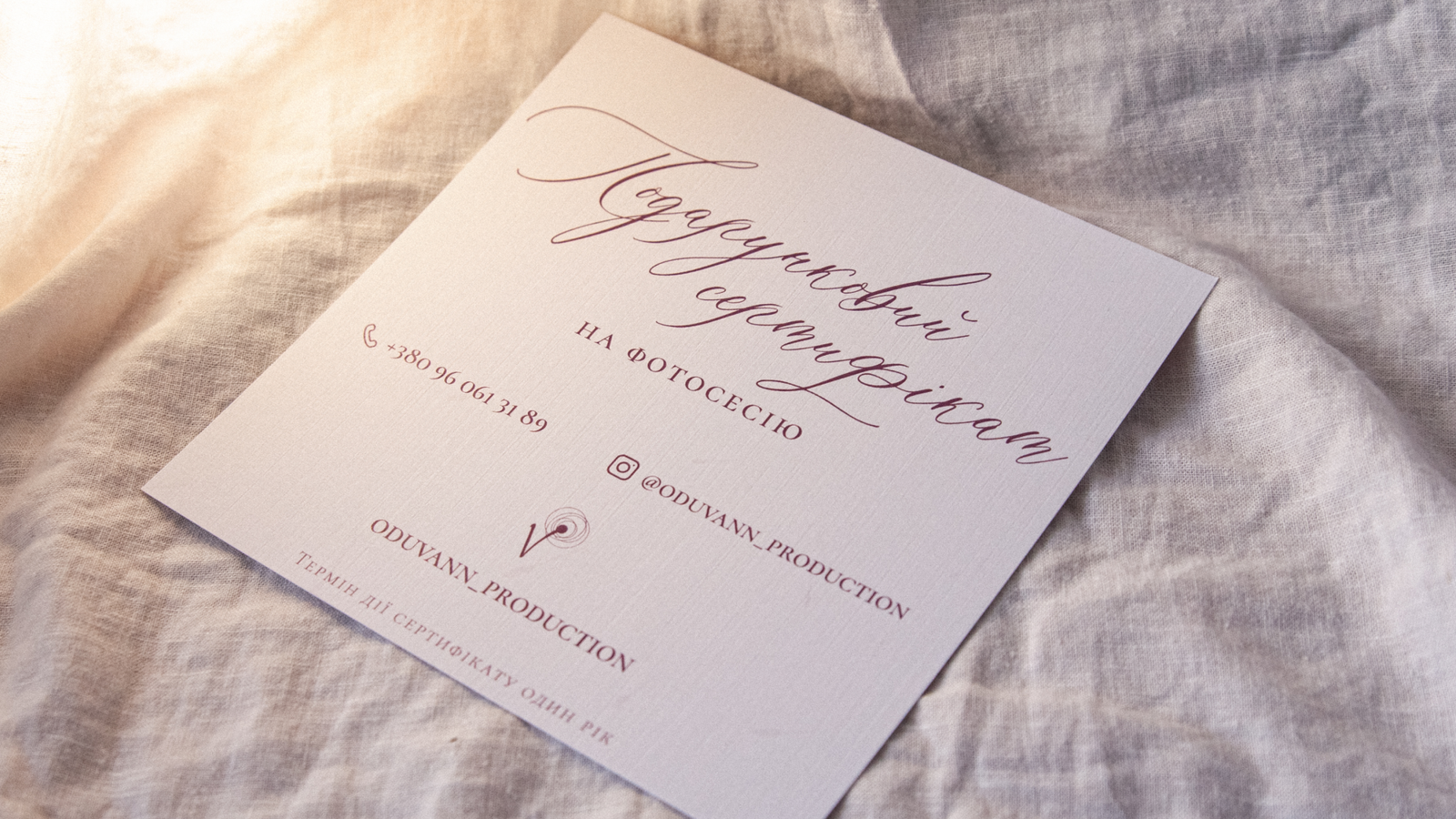 I’ve collaborated with the customer to design a lightweight and elegant gift certificate for a photography session. In addition to the graceful design, I’ve also helped choose the materials and wrapping for the certificate.